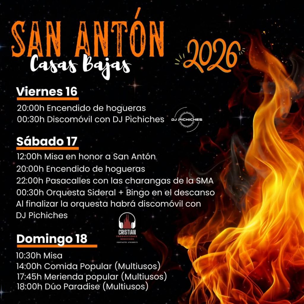 Hogueras de San Antón en Casas Bajas – Del 16 al 18 de enero de 2026