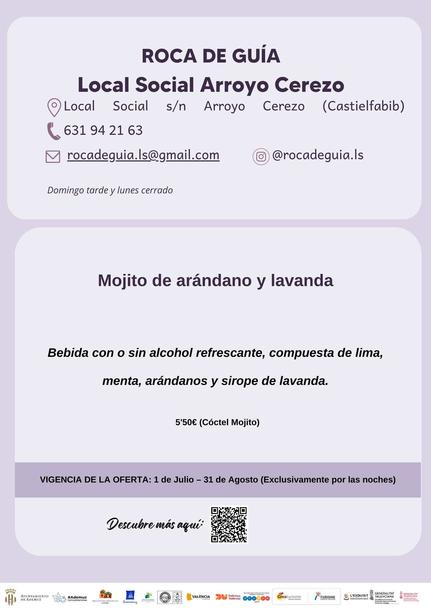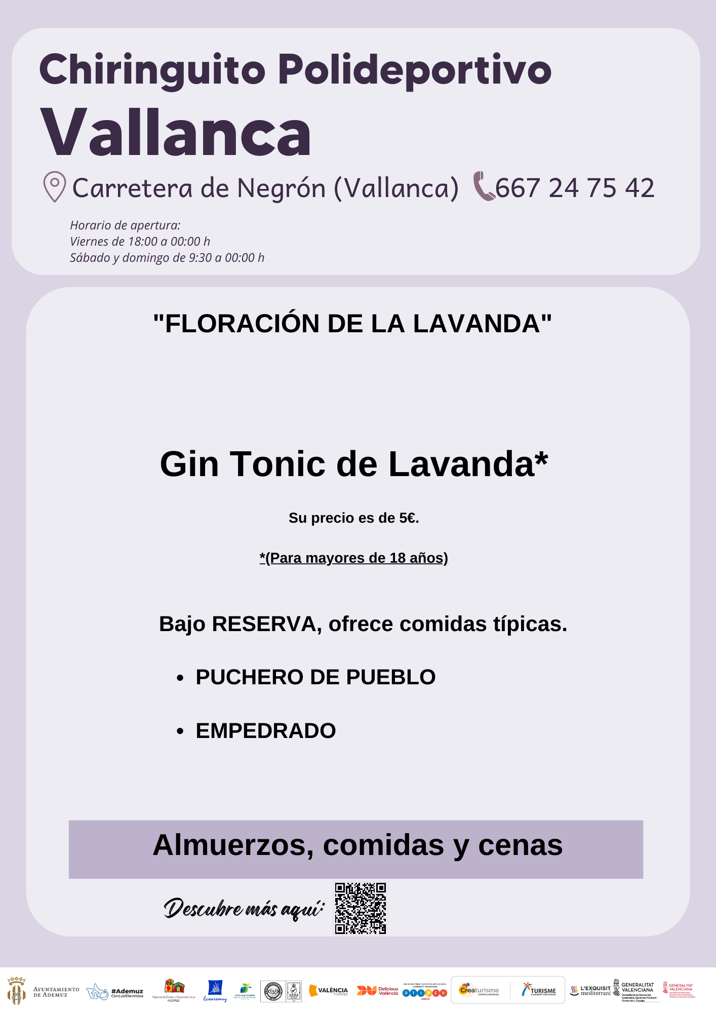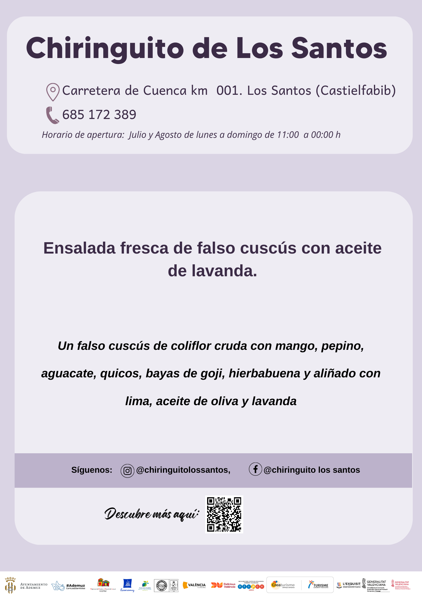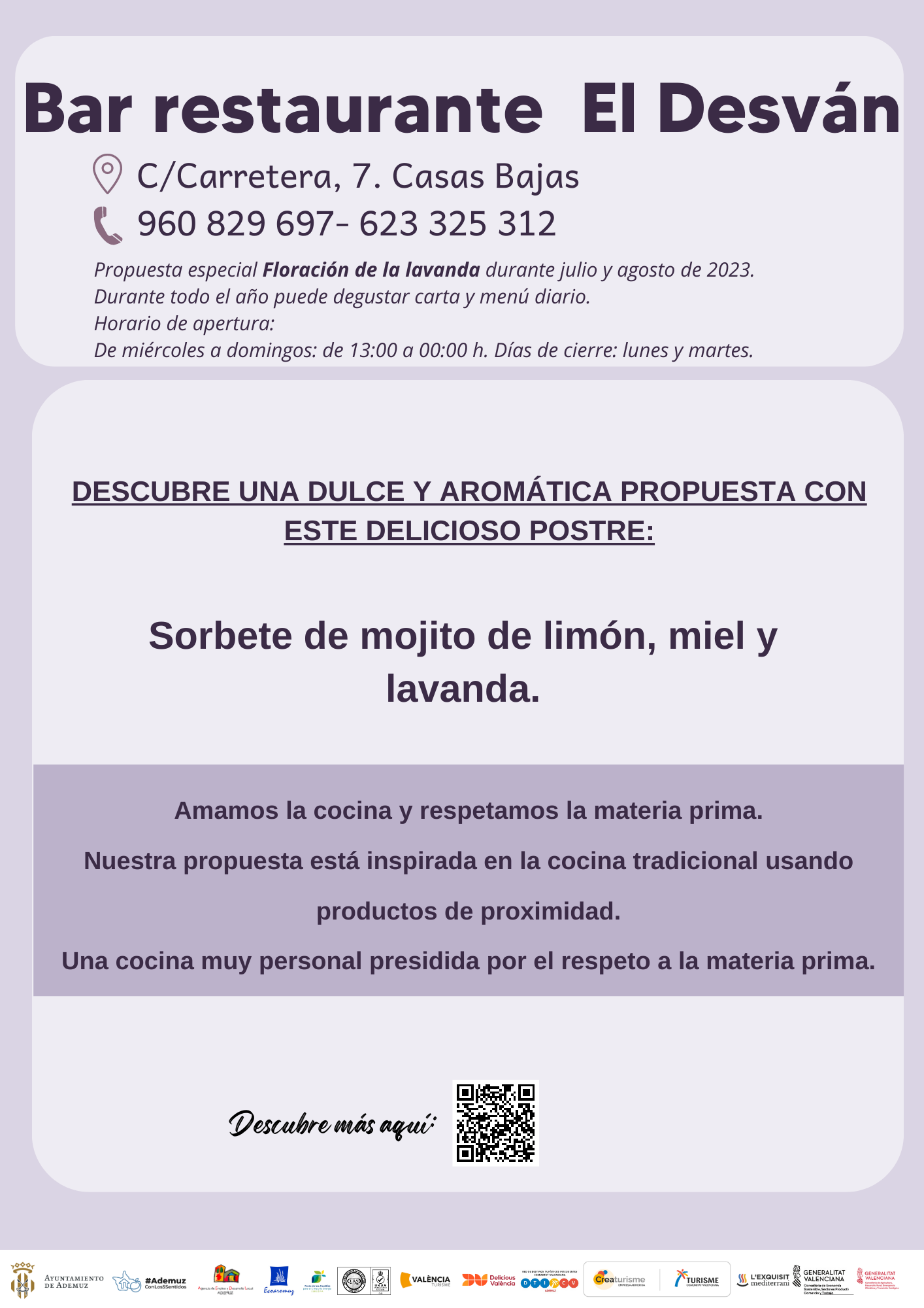 Propuestas gastronómicas de la Lavanda de 2023 en los establecimientos adheridos en el municipio de Ademuz.